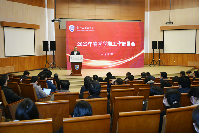 2023年2月15日,雷竞技官网(rayban)2023年春季学期工作部署会在阿语楼国际会议厅举行。