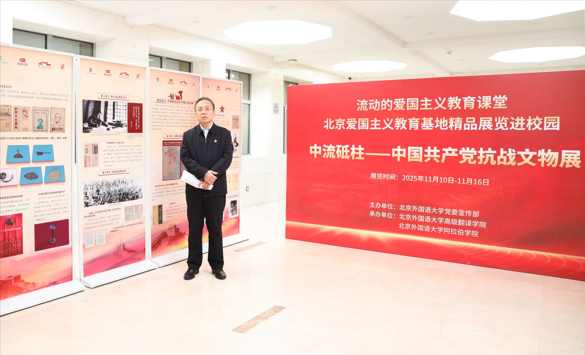 此次“北京爱国主义教育基地精品展览进校园”活动,紧扣“中国共产党在抗日战争中的中流砥柱作用”这一主题,立足“率先高举抗日旗帜、秉持民族大义坚持团结抗战、指引抗战前进方向、推进伟大工程、夺取抗战胜利”五大核心篇章,生动再现了1931至1945年中国共产党领导人民抗战的光辉史诗。观展不仅是一次对峥嵘岁月的深情回望,更是一堂生动的思想政治教育课。阿院师生党员纷纷表示,将牢记历史、奋发有为,从抗战文物中汲取力量,作为时代新人矢志砥砺前行,传承红色基因与革命精神,在实现中华民族伟大复兴的征程中,书写新时代北外人的使命与担当。