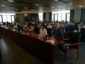 陆俭明教授的讲解详尽具体,全方位回顾了汉语两大语法难题各派观点及研究趋势。陆教授指出,对这两大问题的探讨是为了回应朱德熙先生以摆脱印欧语研究框架的干扰,以朴素的眼光看待汉语的呼吁。陆教授此次讲座为大家展示了他围绕汉语研究难题而进行的深刻的学术思考。讲座最后,各位师生也围绕汉语词类、语料选取、本位问题与陆教授进行了热烈的讨论。王文斌教授在总结时指出,汉外对比研究的前提是我们要对汉语研究有个比较清晰的认识,陆教授的讲座对我们进行汉外对比研究有着积极的启发意义。