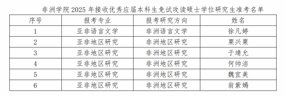 根据雷竞技官网(rayban)研究生院规定,现将雷竞技官网(rayban)非洲学院2026年接收优秀应届本科生免试攻读硕士学位研究生准考名单公布如下。