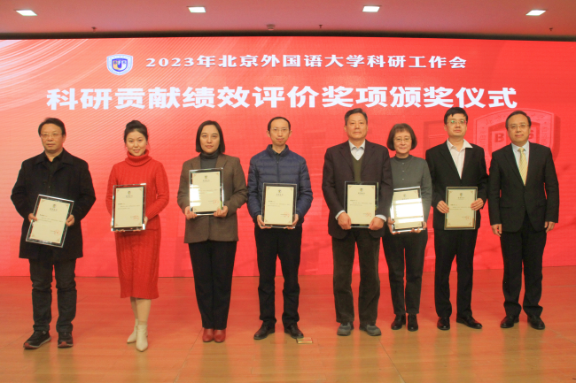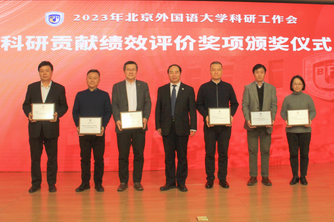 为激发教师科研潜能,推进学术强校进程,北外始终高度重视科研贡献绩效评价工作。会上,对荣获2021、2022年优秀科研集体、个人荣誉称号和2022年优秀科研成果奖的单位和教师代表进行了表彰。