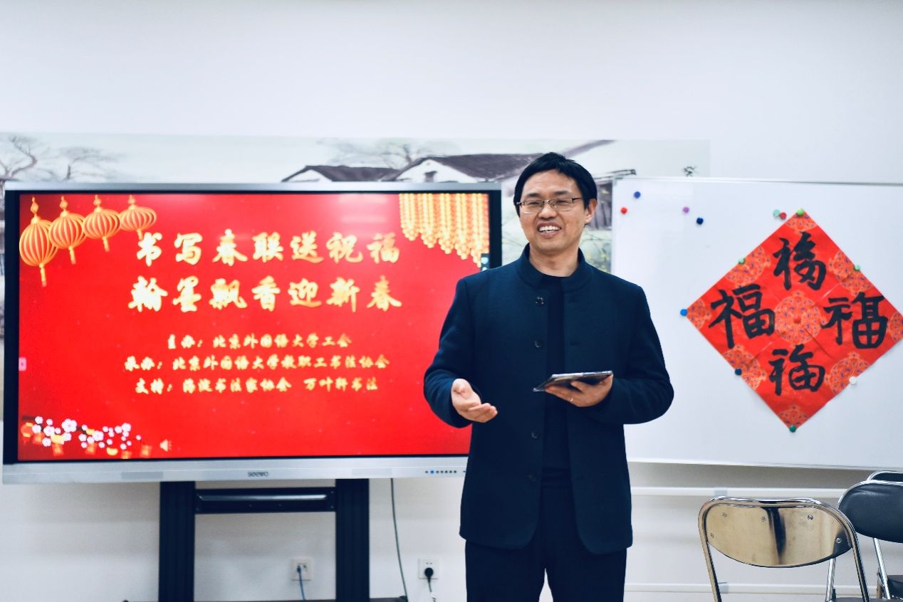 书写春联送祝福 翰墨飘香迎新春 北外教职工书法协会开展新春送福活动