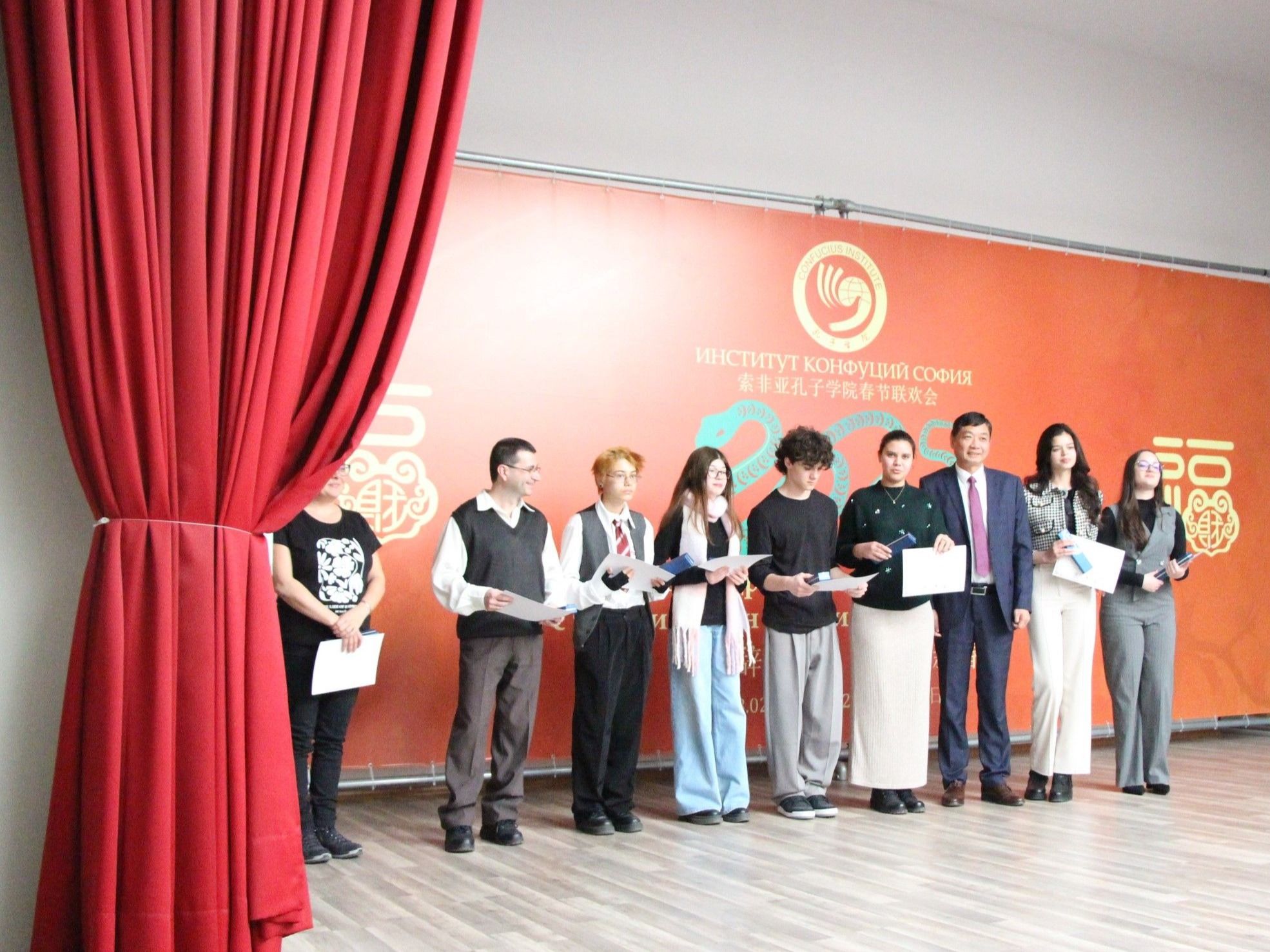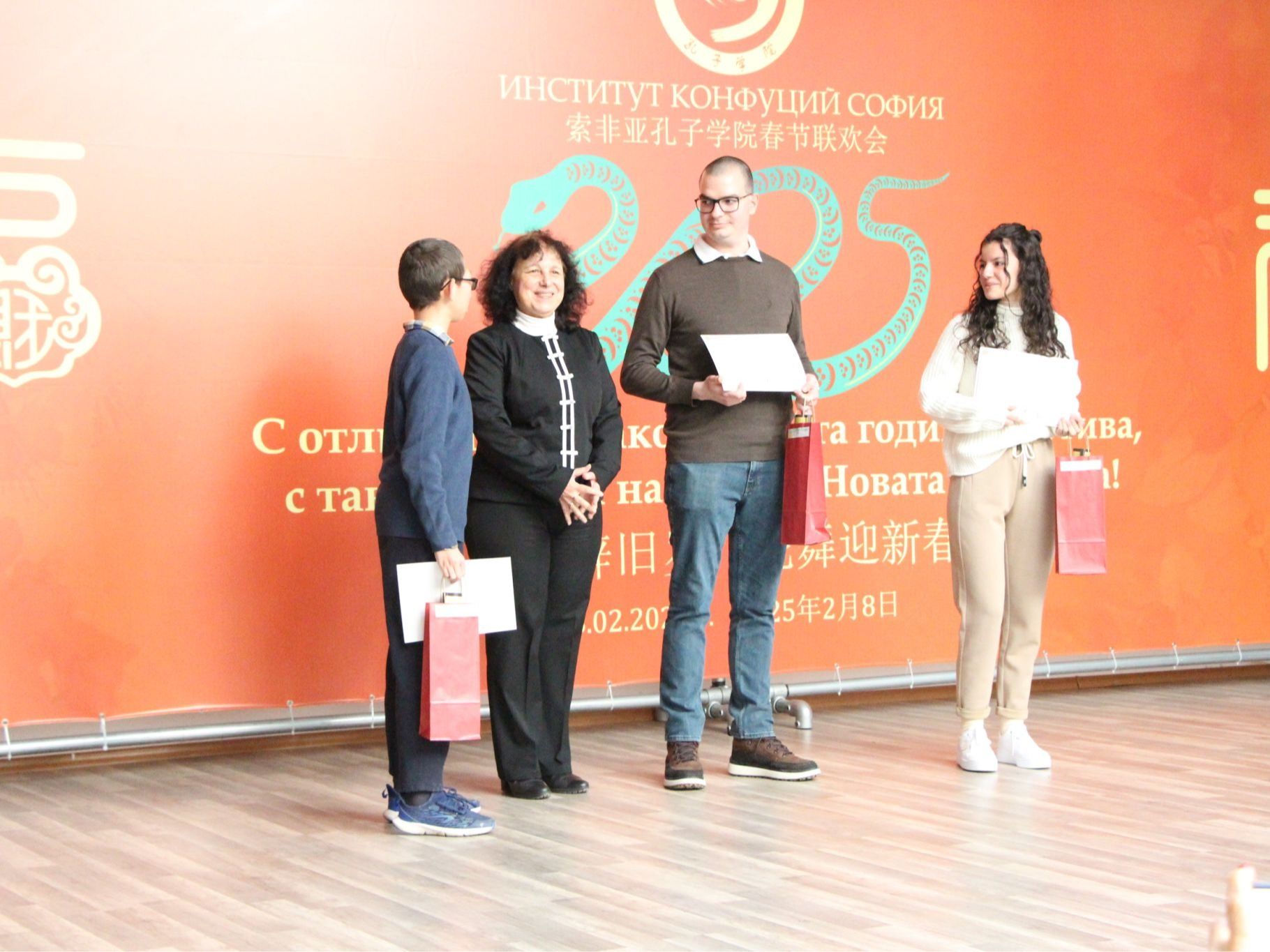 当地时间2月8日,索非亚孔子学院举办2025年中保师生春节联谊会,庆祝中国蛇年春节。中国驻保加利亚大使馆教育事务负责人杨天,保加利亚教育和科学部国际合作司高级专家安格尔·阿波斯托洛夫(Angel Apostolov),保加利亚外交部外交学院高级专家瓦伦丁·卡特兰吉埃夫(Valentin Katrandzhiev),索非亚大学副校长蕾内塔·博然科娃(Reneta Bozhankova),西南大学副校长彼特拉娜·斯托伊科娃(Petrana Stoykova),保加利亚记者协会主席斯奈让娜·托多洛娃(Snezhana Todorova),保加利亚翻译家协会主席安东尼娅·潘切娃(Antonia Pencheva),索非亚大学东方语言文化中心东亚和东南亚教研室主任安东尼娅·灿科娃(Antonia Tsankova)、中国经济和政治中心主任格奥尔基·乔巴诺夫(Georgi Chobanov),索非亚大学东方语言文化中心研究员、索非亚孔子学院保方荣誉院长纳科·斯特凡诺夫(Nako Stefanov),大特尔诺沃大学孔子学院保方院长伊斯克拉·曼多娃(Iskra Mandova),索非亚中国文化中心主任洪海,新华社索非亚分社首席记者林浩,欧洲时报索非亚记者站负责人陈健,索非亚孔子学院保方院长阿克西尼娅•科列娃(Aksiniya Koleva)、中方院长陈瑛,以及来自孔院部分下设孔子课堂及教学点的中小学校长、师生、家长及各界代表等300余人参加。新华网等媒体对本次活动进行了报道。