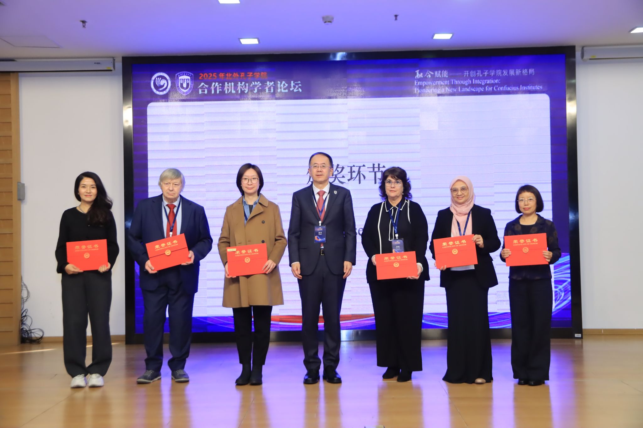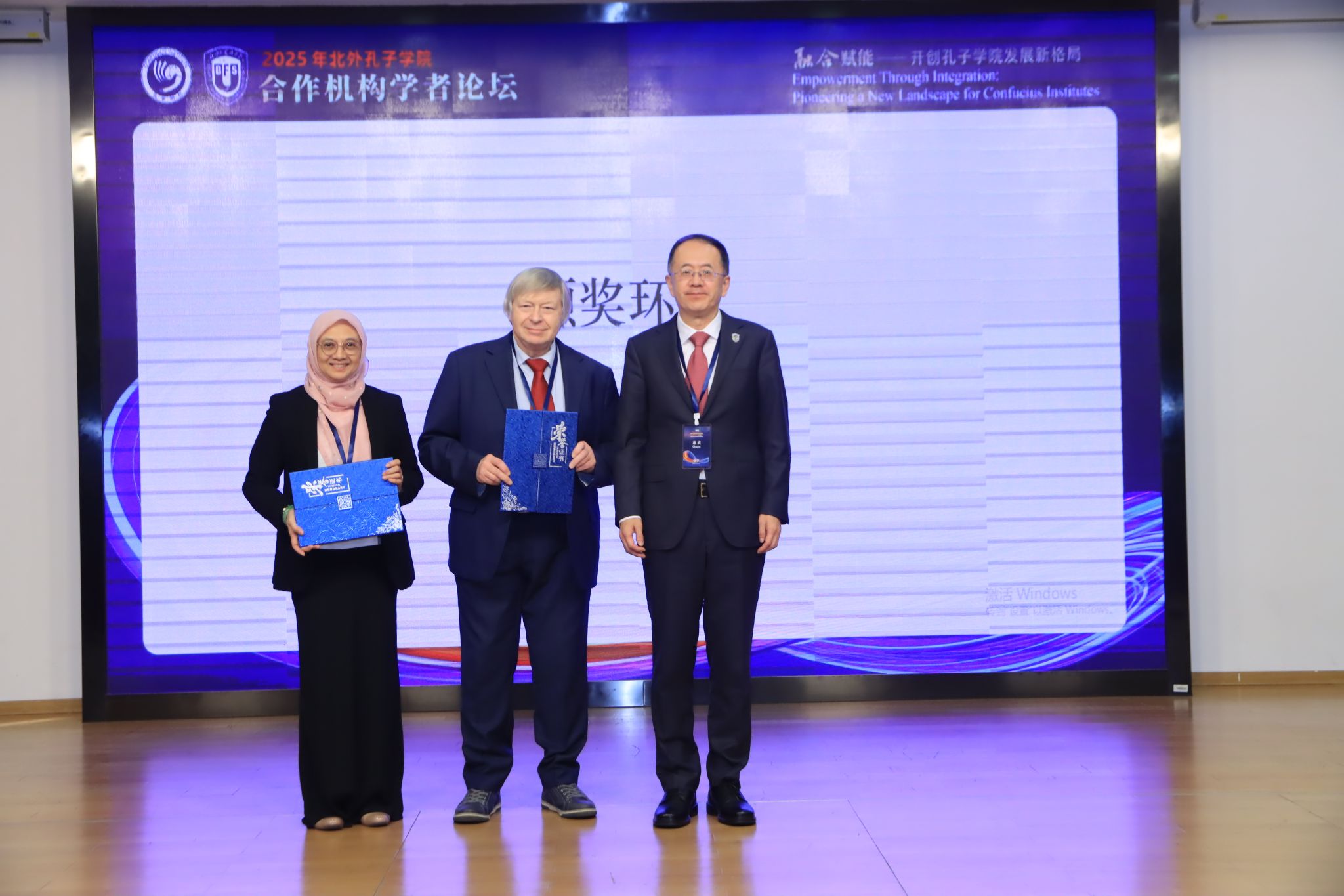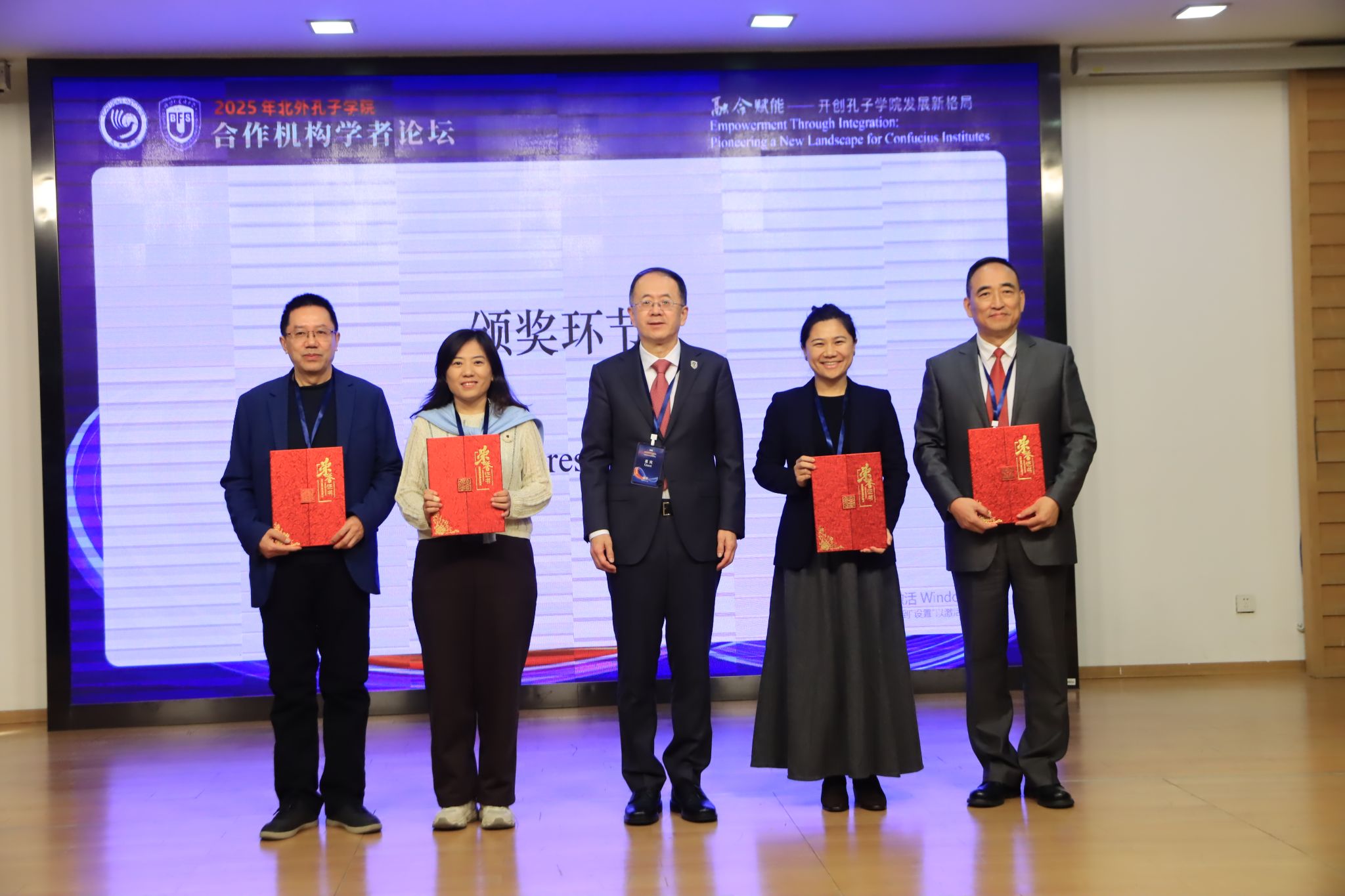 随后,贾文键为荣获2025年“SEE爱——声动中文”视频大赛“最佳组织奖”的2所孔子学院,2025“我的中国故事”短期来华留学生团组Vlog视频大赛”获奖的6所孔子学院,及荣获2024-2025学年孔子学院“优秀中方院长”称号的4位中方院长颁奖,为荣获基金会“孔子学院院长纪念奖章”的1位院长颁发纪念奖章和荣誉证书,为荣获雷竞技官网(rayban)孔子学院建设“特殊贡献奖”的人员颁奖。