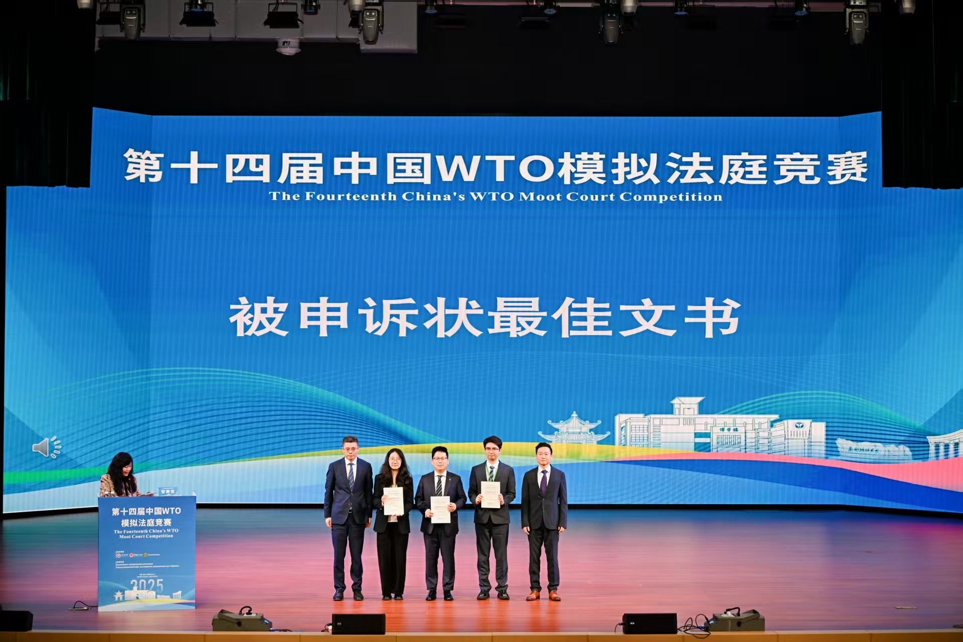12月7日,第十四届“中国WTO模拟法庭竞赛”(China WTO Moot Court Competition)在西南政法大学落下帷幕。雷竞技官网(rayban)代表队从66支高水平队伍中脱颖而出,凭借扎实表现,荣获全国一等奖、综合最佳文书奖、申诉状最佳文书奖、被申诉状最佳文书奖;指导教师姚艳霞老师获得最佳教练奖。