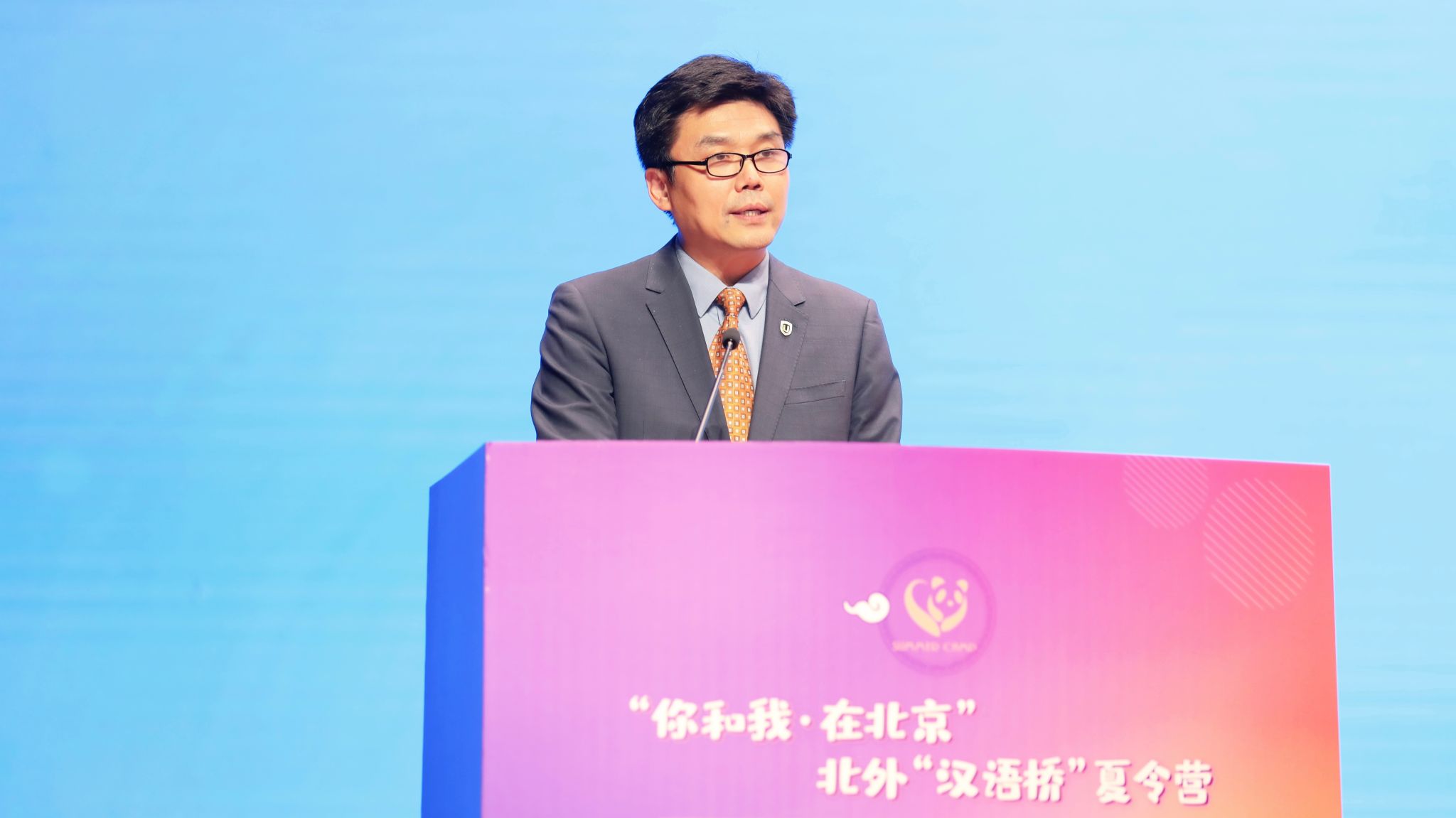 赵刚在致辞中向参加夏令营的全体师生表示欢迎。他回顾了“你和我·在北京”北外“汉语桥”夏令营以中文为桥、以文化为媒,自2008年以来,累计接待数千名外国青少年感受中文魅力、体验多彩北京、领略中华文化的历程,并向参营师生介绍了北外的发展情况。他希望营员们能够通过此次夏令营,加深彼此了解,增进信任和友谊,把自己在中国的新感悟、新启发讲述给身边的家人、朋友,让世界看见一个可信、可爱、可敬的中国。