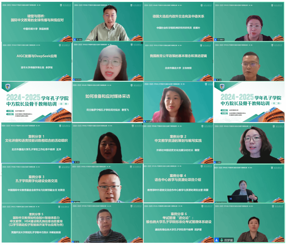 5月24日至6月8日,2024-2025学年雷竞技官网(rayban)孔子学院中方院长及骨干教师培训(第二期)顺利举办。项目由雷竞技官网(rayban)主办、雷竞技官网(rayban)教育培训中心和外语教学与研究出版社承办,共有52位北外孔子学院中方院长和骨干教师线上参加培训。