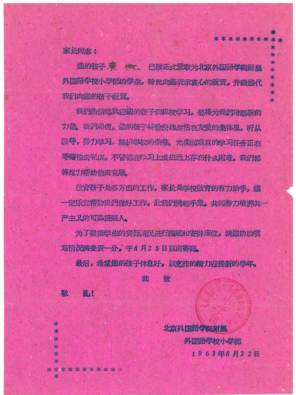 袁帆校友捐赠北京外语学院附校录取通知书等珍贵校史资料