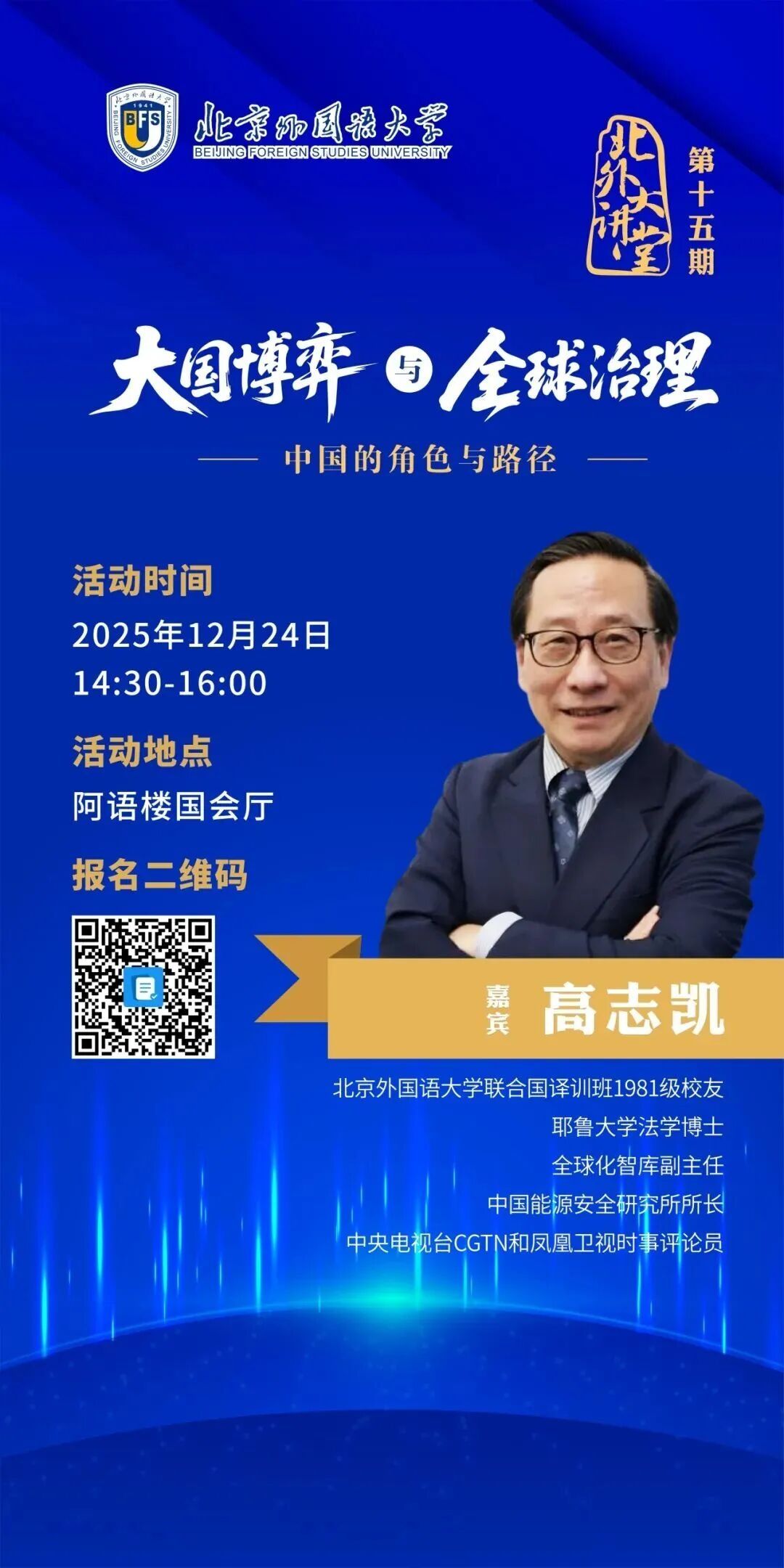 高志凯教授成就涉足经济、民生、外交、公共安全、学术等多个领域,其很多独具见解的建言报告被中国有关部门采纳和重视,并转化为成果。讲座中高志凯教授将结合自己丰富的工作经历与感悟,讲述大国博弈与全球治理中中国的角色定位与路径探索。