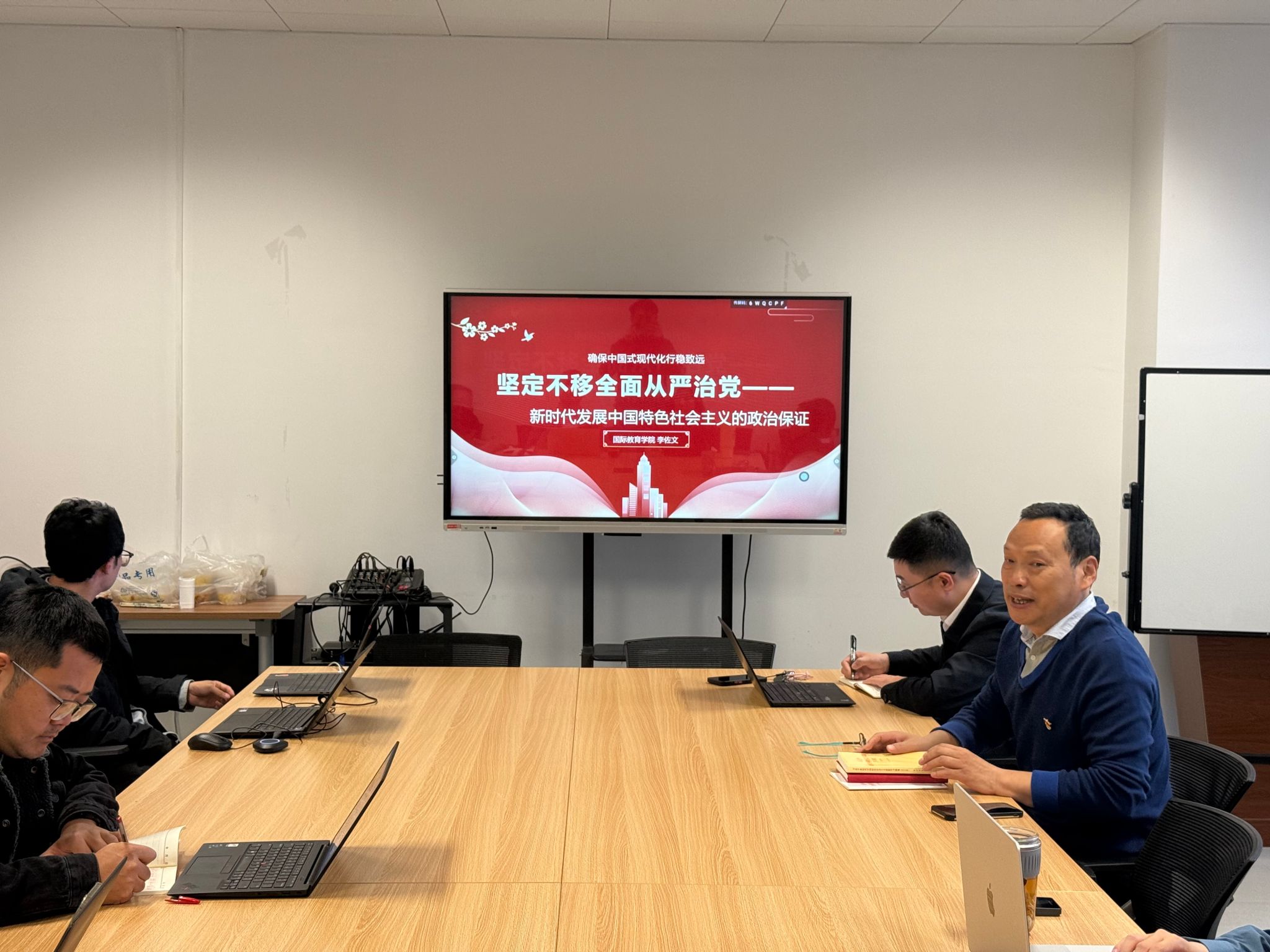 2025年3月11日,国际教育学院党总支围绕“全面从严治党”专题在国际大厦 928 室举行理论学习中心组集体学习会。党总支书记李佐文主持会议并领学,党总支委员、理论学习中心组成员参加学习会议并发言。