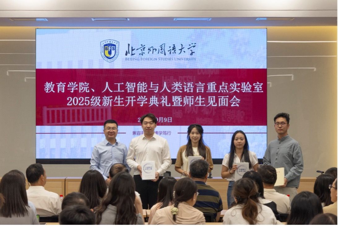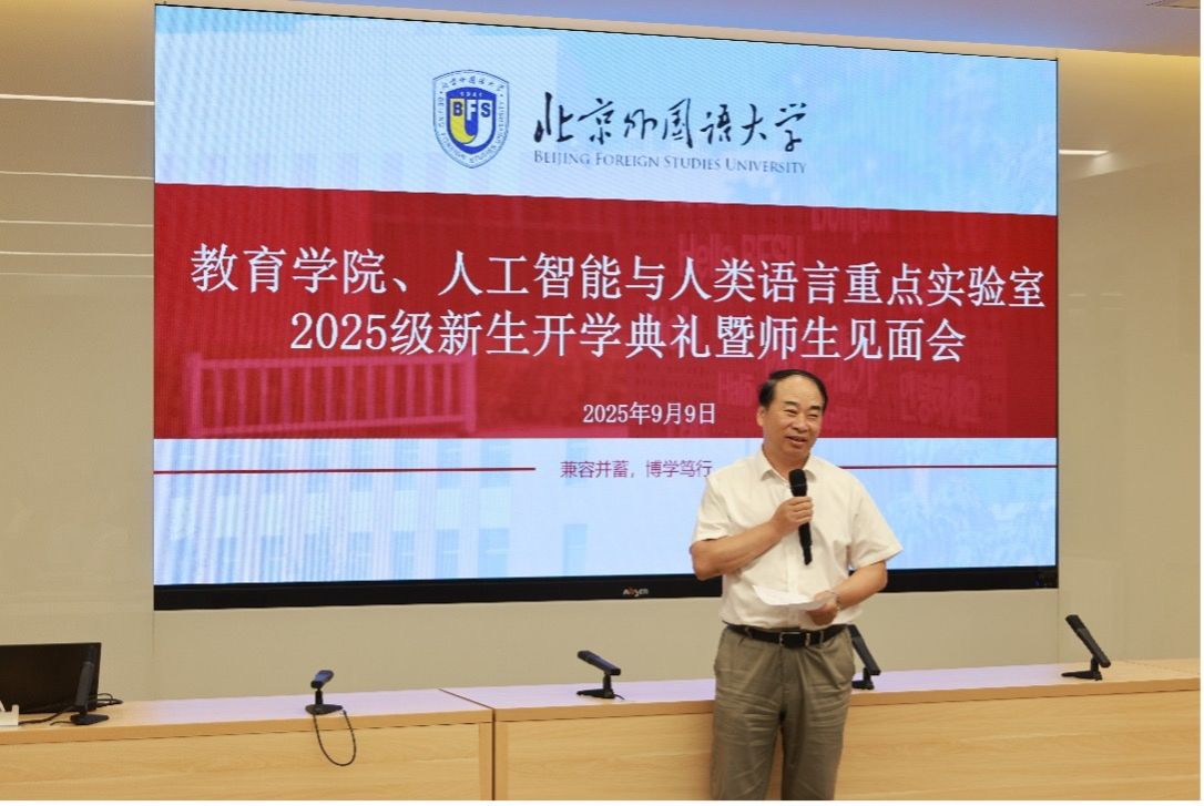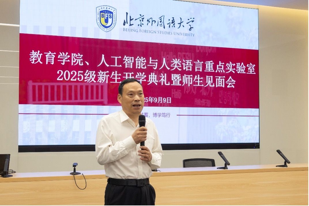 9月9日,教育学院、人工智能与人类语言重点实验室举办了2025级新生开学典礼暨师生见面会。学校党委书记、教育学院学术委员会主任王定华教授出席,教育学院、人工智能与人类语言重点实验室全体教师、部分在校生代表和全体新生参加了本次活动。典礼由教育学院党总支副书记祝军副教授主持。