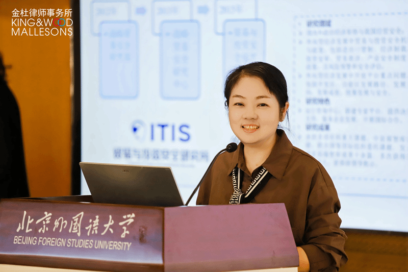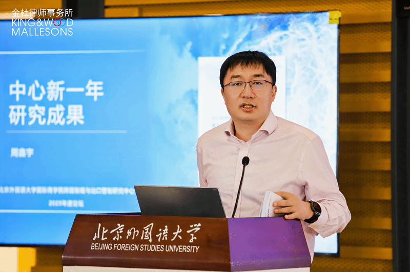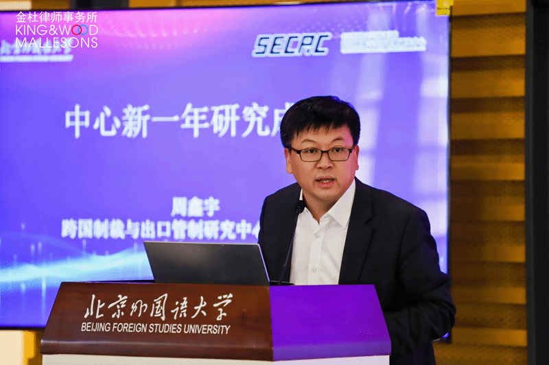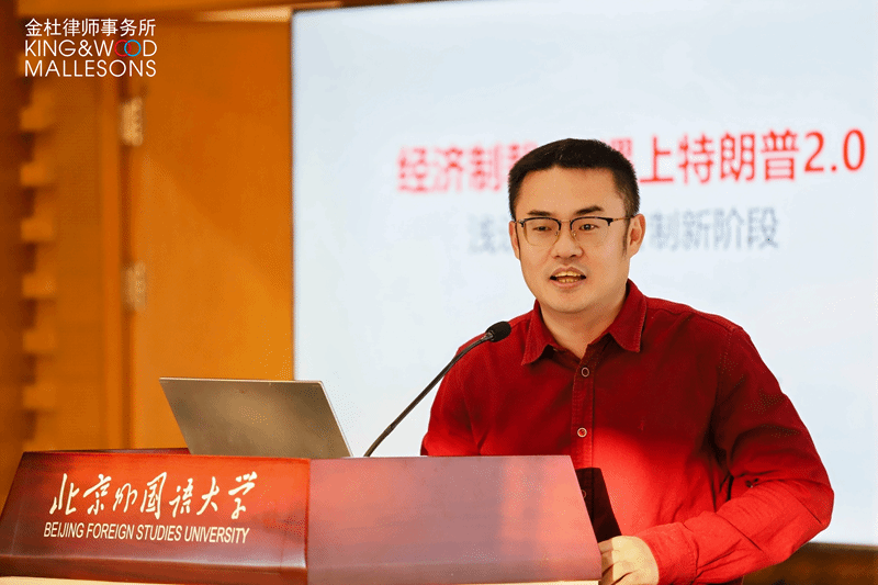 研究中心联席主任、金杜跨境监管团队牵头合伙人刘新宇围绕“主要国家管制制裁的最新动态暨相关法令”做了主题发言,研究中心副秘书长、金杜律师事务所跨境监管团队合伙人郭欢围绕“企业‘走出去’面临的国际形势及风险应对”做了主题分享,并分别就管制制裁最新动态、中美加征关税变化、中国出口管制形势、企业出海风险管理与实务应对进行了深入分析。