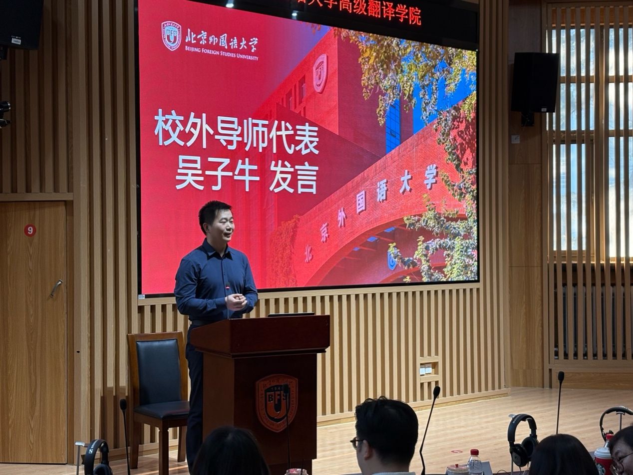 高级翻译学院院长任文在致辞中阐述了项目对于落实立德树人、整合行业资源、创新人才培养模式的重要意义。任文院长指出,校外导师既是同学们的“引路人”和“价值观导师”,也是学院发展的“合作者”。校外导师制度的建立标志着高翻学院正在构建“学院教师—校外导师—在校学生”三元育人共同体,让课堂和职场、学习与实践、学术理想与社会责任不再割裂。