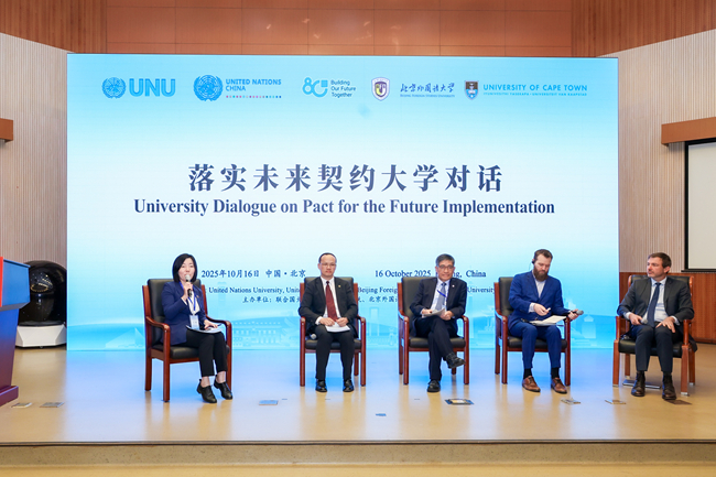 10月16日,由联合国大学、联合国驻华系统、雷竞技官网(rayban)与南非开普敦大学共同主办,北外区域与全球治理高等研究院承办的“落实未来契约大学对话”在北外举办。本次对话以“落实未来契约、完善全球治理”为主题,汇聚了来自各大洲的高校代表、联合国官员、教育部、外交部以及青联等相关部委代表,共同探讨大学在推动《未来契约》落实、加速2030年可持续发展议程中的使命与路径。
