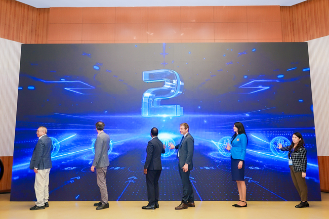 联合国秘书长办公厅落实未来契约部门主任塞姆巴·卡鲁阿、联合国大学日内瓦政策研究中心主任亚当·戴、北外“落实未来契约大学对话”项目负责人王燕共同启动“未来学习卓越中心”。