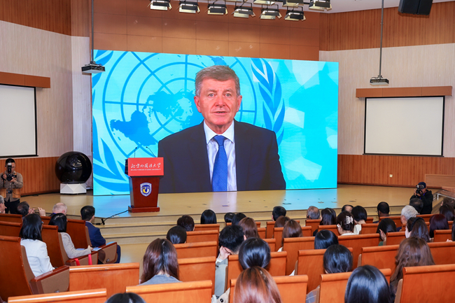盖 ·莱德通过视频致辞,呼吁国际社会在“混乱和不确定的时代”坚守多边主义。他指出,《未来契约》提出了和平、公平、包容和可持续的未来愿景,而大学与学术界在将理念转化为行动的过程中可以发挥关键作用。