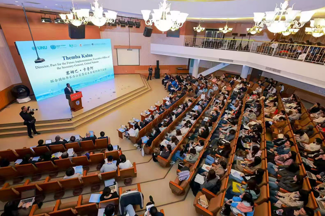 塞姆巴·卡鲁阿系统介绍了《未来契约》包含的56项具体行动举措及其在全球与区域层面的实施进展。他强调,大学是连接政策与行动、理想与现实的重要桥梁。他高度评价中国高校在推动多边合作、青年参与和数字治理方面的积极探索,呼吁全球高校共同构建面向未来的知识共同体。