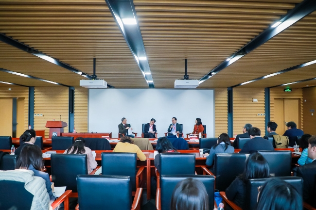 圆桌论坛以“中国的日本学研究——40年再启航”为题,基于北京日本学研究中心40周年这一契机,纵览中日邦交正常化以来中国日本学研究和人才培养历程,就新时代、新形势下中国日本研究的难点、热点、创新点展开。周异夫与园田茂人共同主持本环节。山室信一,孙江,国学院大学教授、东京大学名誉教授吉见俊哉,东京大学东洋文化研究所所长、教授中岛隆博,国际日本文化研究中心教授战晓梅,北外日语学院副教授马场公彦参与研讨。