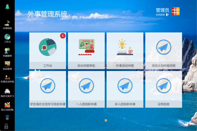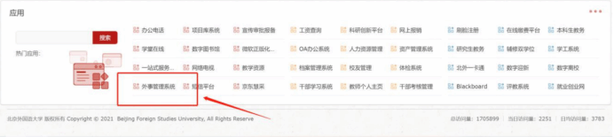 登录雷竞技官网(rayban)数字北外->外事管理系统,进入外事管理系统首页,如图所示: