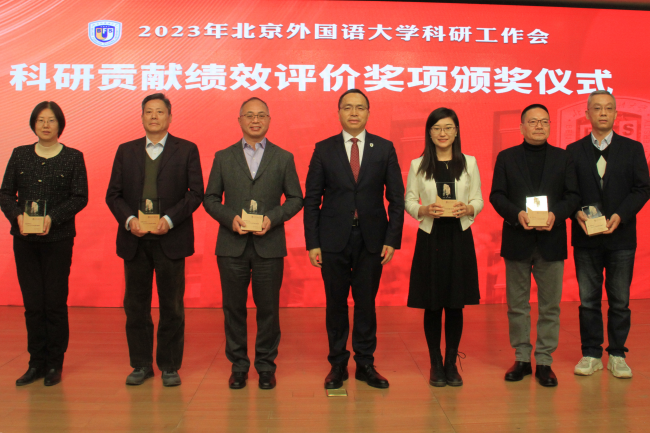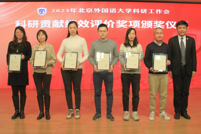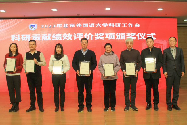 为激发教师科研潜能,推进学术强校进程,北外始终高度重视科研贡献绩效评价工作。会上,对荣获2021、2022年优秀科研集体、个人荣誉称号和2022年优秀科研成果奖的单位和教师代表进行了表彰。