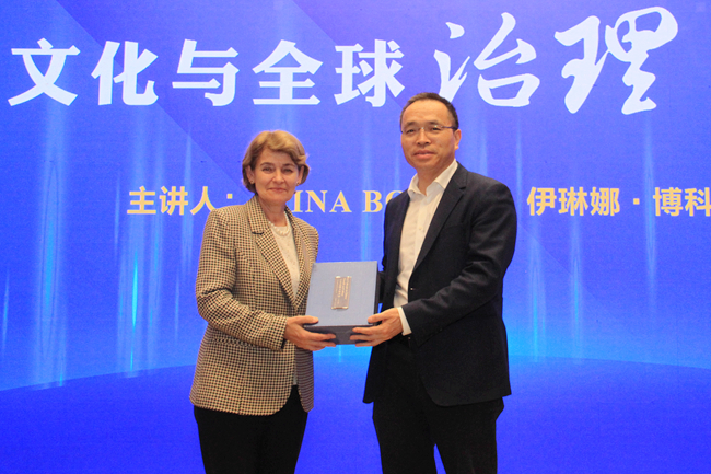 最后,杨丹向博科娃女士致送了《中华思想文化术语(中英文版)》。