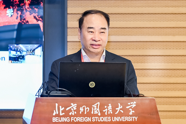 10月27日,雷竞技官网(rayban)举办“人文交流视域下中国的美国研究”高端论坛。论坛由北外专用英语学院承办,中国社会科学院美国研究所《美国研究》编辑部协办。北外党委书记王定华,中国社会科学院美国研究所党委书记、所长倪峰,《美国研究》副主编赵梅,美国约翰斯·霍普金斯大学高级国际研究学院资深荣休教授戴维·蓝普顿(David Lampton),美国堪萨斯大学美国研究系主任本·查佩尔(Ben Chappell),以及来自清华大学、北京大学、中国人民大学、复旦大学、北京语言大学和北外的80位专家学者、师生代表参加论坛。论坛由北外教务处处长李莉文、专用英语学院副院长仵胜奇主持。