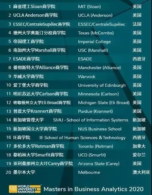 商业分析硕士全球TOP20