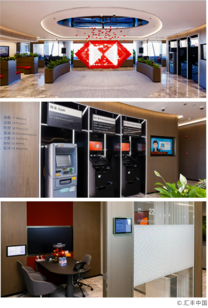 汇丰中国北京首家旗舰行拥有2,700平方米的超大旗舰空间。会客厅以“四季”相关诗词冠名展现北京特有的“四季分明”,如:春辉、半夏、金秋、睿雪……同时,也象征着人生财富的四个阶段:扬帆起航、进取突破、稳定增长、传承积淀。