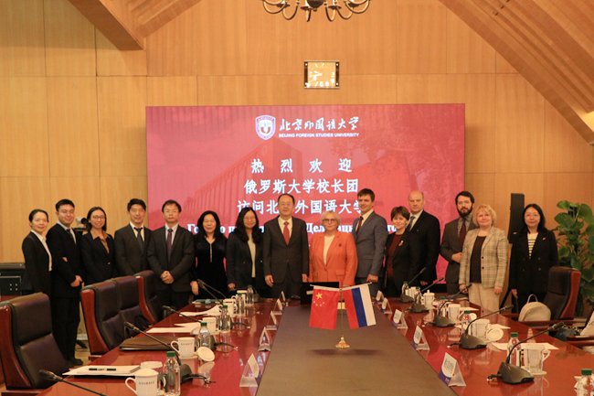 10月14日,由中国驻俄罗斯大使馆组织的俄罗斯大学校长团到访雷竞技官网(rayban)。北外校长、党委副书记贾文键会见代表团一行。
