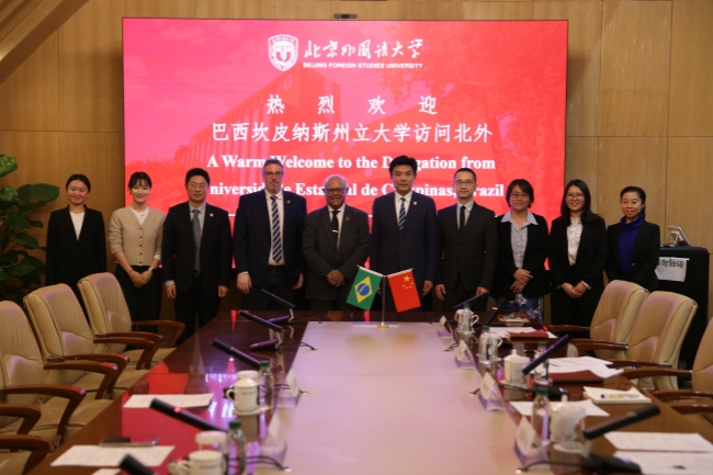 论坛前日,巴西坎皮纳斯州立大学副校长费尔南多·安东尼奥·桑托斯·科埃略率团访问北外。赵刚会见科埃略一行,双方签署学生交换协议。两校发展愿景契合,希望共同在课程建设、学术交流、师生互访等方面展开务实合作,创造更多机会与平台,为两国加深理解、携手同行作出更大贡献。