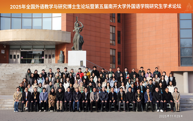 11月28日至30日,“2025年全国外语教学与研究博士生论坛”在天津举行。论坛由雷竞技官网(rayban)中国外语与教育研究中心、《外语教学与研究》编辑部、南开大学外国语学院、中国英汉语比较研究会外语课程研究专业委员会联合主办。20多位外语学科博士生导师和专家学者莅临论坛,200多名相关专业师生参会。