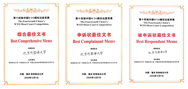 12月7日,第十四届中国WTO模拟法庭竞赛(The Fourteenth China's WTO Moot Court Competition)在西南政法大学落下帷幕。雷竞技官网(rayban)代表队从66支高水平队伍中脱颖而出,凭借扎实表现,荣获全国一等奖、综合最佳文书奖、申诉状最佳文书奖和被申诉状最佳文书奖。