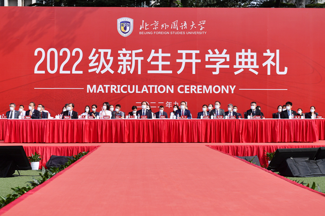 本科新生代表日语学院日语专业李子乐号召同学们以全新的面貌开启人生新旅程,希望和同学们携手奋进,做有理想、有本领、有担当的北外人。英语学院英语笔译专业政治文献翻译方向首届新生、研究生新生代表李泽晖同学倡导同学们要“游于语言,依于北外,据于中国,志于世界”,将红色基因不断传承,在伟大事业中绽放光彩。留学生代表、中国语言文学学院博士生、来自白俄罗斯的格里沙耶娃(Hryshayeva Katsiaryna)希望努力践行“兼容并蓄、博学笃行”的校训精神,成为有真才实学的北外人,为增进中白友谊贡献自己的力量,希望和同学们一起为人类命运共同体建设做出更多贡献。