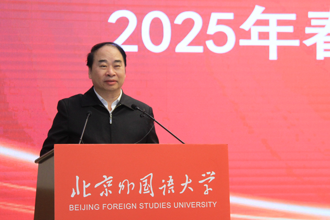 王定华强调,2025年是面向十年建成教育强国全面布局、高位推进之年,我们要更加紧密地团结在以习近平同志为核心的党中央周围,突出党建引领,聚焦立德树人,进一步提高政治站位,充分发挥自身优势,守正创新、锐意进取、振奋精神、担当作为,在统一思想中凝聚力量,在改革创新中真抓实干,持之以恒抓好工作落实,全力以赴推动新学期各项工作任务的完成,努力开创中国特色世界一流外国语大学建设新局面,为教育强国建设作出北外新的更大贡献。