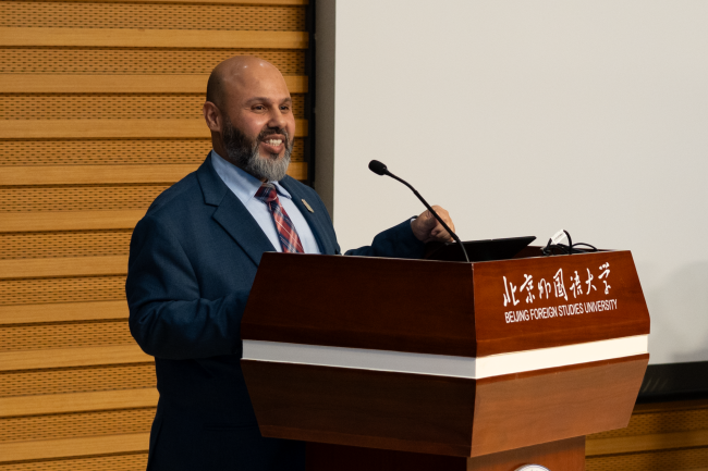 活动开始前,赵刚会见了Yahya一行。赵刚介绍了北外的发展历程、专业特色与建设成果,他表示,北外高度重视与沙特各界的友好合作,愿以此次文化交流活动为契机,与沙特驻华使馆及沙特高校进一步拓展合作空间,共同搭建更多高质量的青年交流与学术对话平台,为深化两国人文交往、增进青年相互理解注入持续动力,为促进中沙战略伙伴关系行稳致远贡献教育力量。Yahya对北外的热情接待表示感谢。他强调了此次交流活动对于巩固沙中战略伙伴关系、加深两国青年理解互信的重要作用,并表示,沙特驻华使馆将积极支持并推动双方在教育、文化、青年等各领域的合作项目。