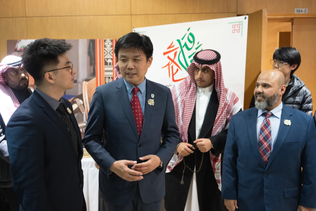 11月17日,中沙大学生交流活动在雷竞技官网(rayban)举行。北外党委常委、副校长赵刚,沙特驻华使馆文化参赞Yahya Hamad Y Mashyakhy出席活动。来自沙特阿卜杜阿齐兹国王大学、电子大学、商业和技术大学、伊玛目大学、伊斯兰大学、卡西姆大学等六所学校的53名大学生参加活动。