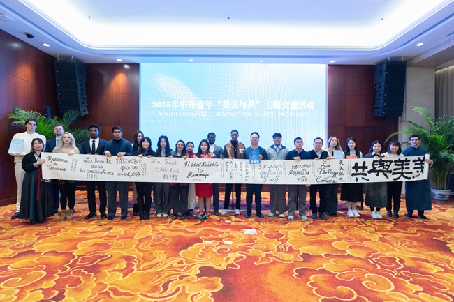 此外,在中外青年才艺交流环节,北外国际学生代表与来自世界各地的青年学子同台互动,通过文化展示、艺术交流等,生动诠释了“各美其美,美美与共”的活动理念。