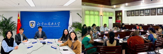 北外孔子学院工作处副处长(主持)翟峥、亚洲学院副教授江潇潇,孔子学院斯方院长莎西妮·德纳芭度、中方院长雷明珍等参加会议。
