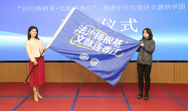 外研集团(外研社)党委书记、董事长,外研社社长王芳为研学营队授旗,标志着“法治铸根基·文脉连香江”宪法主题研学活动正式开启。未来四天,全体营员将走进全国青少年学生法治教育实践示范基地接受沉浸式宪法教育,在人民大会堂领会“一切权力属于人民”的宪法原则,走进中国法院博物馆感受法治历史与司法实践的厚重庄严,走进中国海关博物馆探寻粤港澳大湾区法治协同的历史脉络,在故宫礼制建筑中读懂中华文明的法治基因,并深入社区一线观察基层群众自治的生动实践,在“知行合一”中筑牢法治信仰、厚植家国情怀。