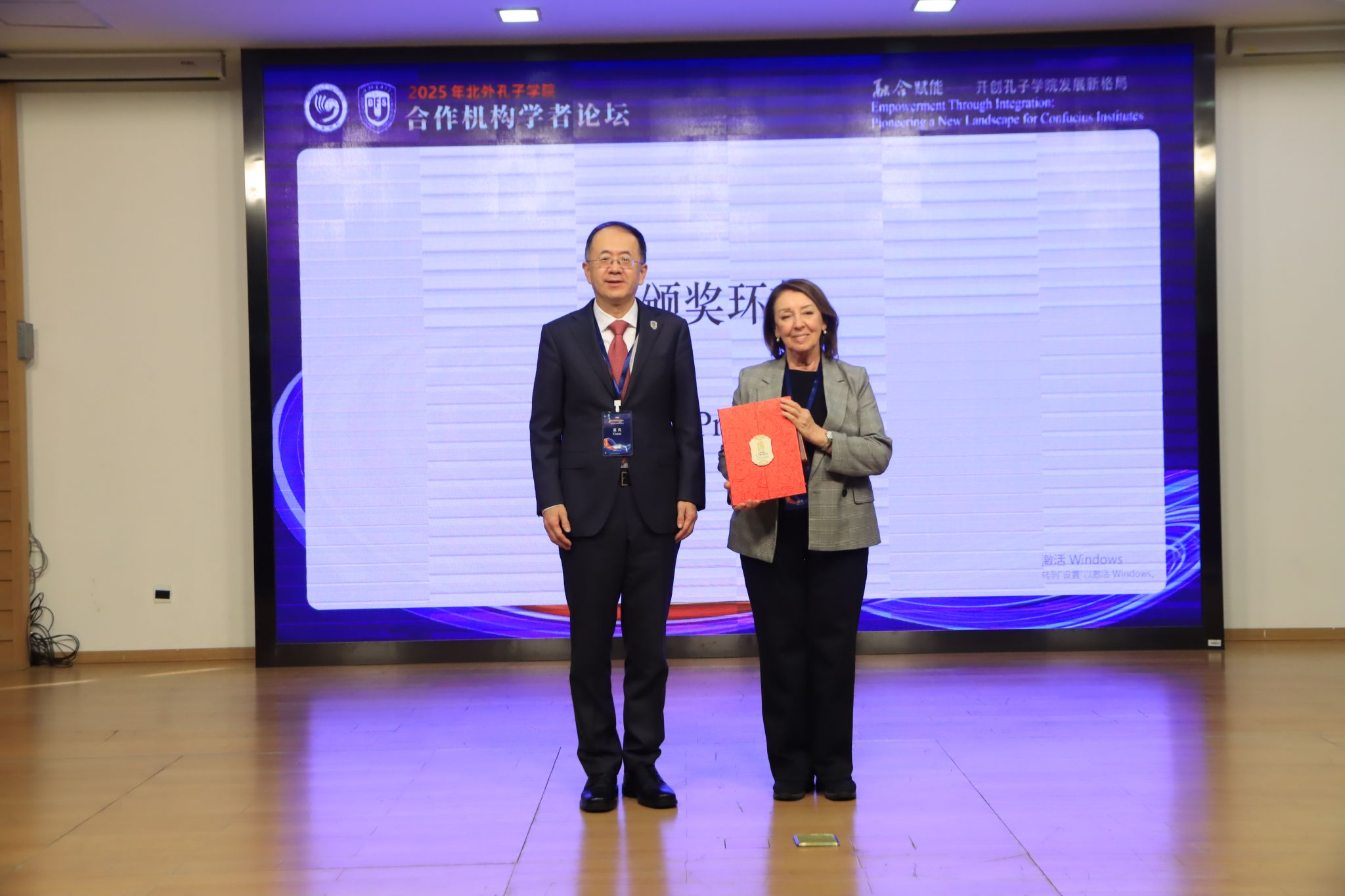 随后,贾文键为荣获2025年“SEE爱——声动中文”视频大赛“最佳组织奖”的2所孔子学院,2025“我的中国故事”短期来华留学生团组Vlog视频大赛”获奖的6所孔子学院,及荣获2024-2025学年孔子学院“优秀中方院长”称号的4位中方院长颁奖,为荣获基金会“孔子学院院长纪念奖章”的1位院长颁发纪念奖章和荣誉证书,为荣获雷竞技官网(rayban)孔子学院建设“特殊贡献奖”的人员颁奖。