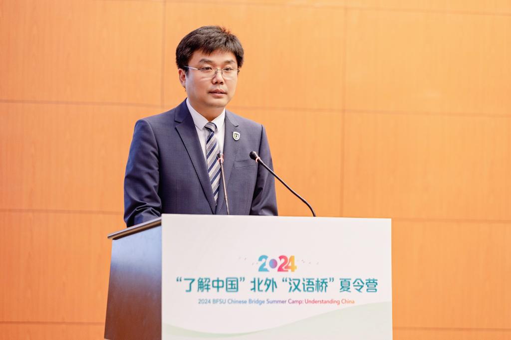赵刚向夏令营师生表示热烈欢迎,并介绍了北外的办学特色。他希望营员们能以本次夏令营为契机,了解中国、探索北京,学习语言、发现美好,带着对中文的深沉热爱、对中国的深刻理解,以及对美好未来的无限憧憬满载而归,成为传播和平与友好的使者。