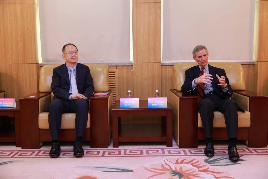 开营仪式前,北外校长、党委副书记贾文键会见了安德雷伊·特霍夫大使等外宾,向来访外宾介绍了北外近年来的发展情况,感谢各使馆多年来对北外举办“你和我·在北京”北外“汉语桥”夏令营的大力支持。