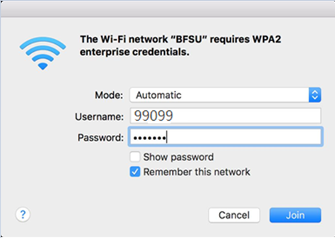 我校目前提供的无线网络标识SSID为 BFSU,采用更安全的802.1x认证方式,可以实现一次认证,永久使用,即无感知加密连接(第一次登录需认证,以后在信号范围内自动连接)。