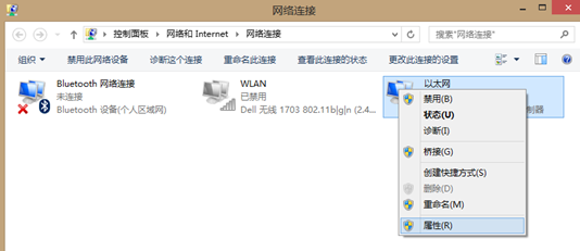 右键选择“以太网”—>属性(见图2-2),