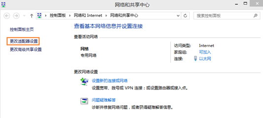 打开【网络和共享中心】,选择“更改适配器设置”(见图2-1),